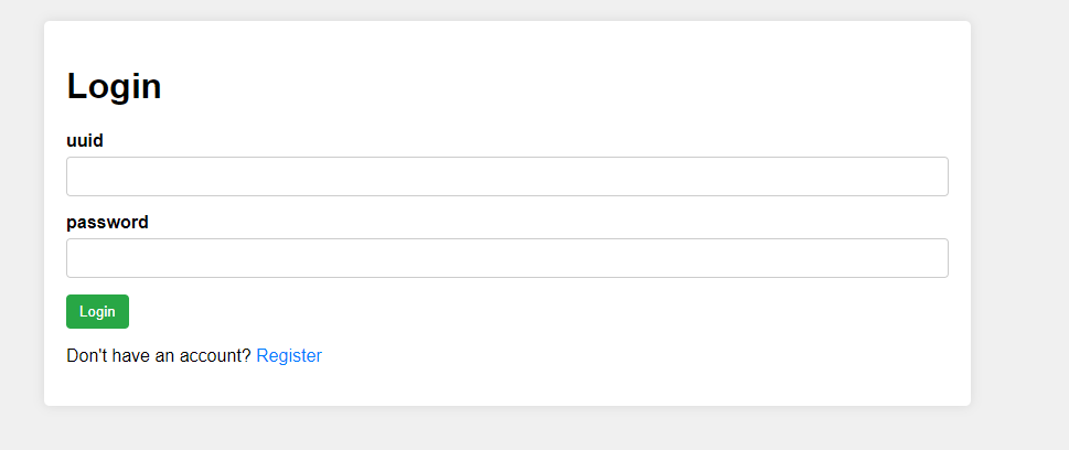 일단 문제에 접속 해보면 이런 페이지가 뜨고 회원가입을 통해 uuid와 비밀번호를 지정 할 수 있다.