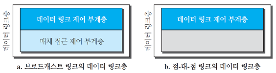 또한 데이터 링크층은 데이터링크 제어 부계층(DLC, Data-Link Control)과 매체 접근 제어 부계층(MAC, Muliple-Access Control)으로 나뉜다.