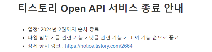 티스토리에 뭔가 꾸준한 글을 작성하고 싶은데 api가 중단된 듯하다.